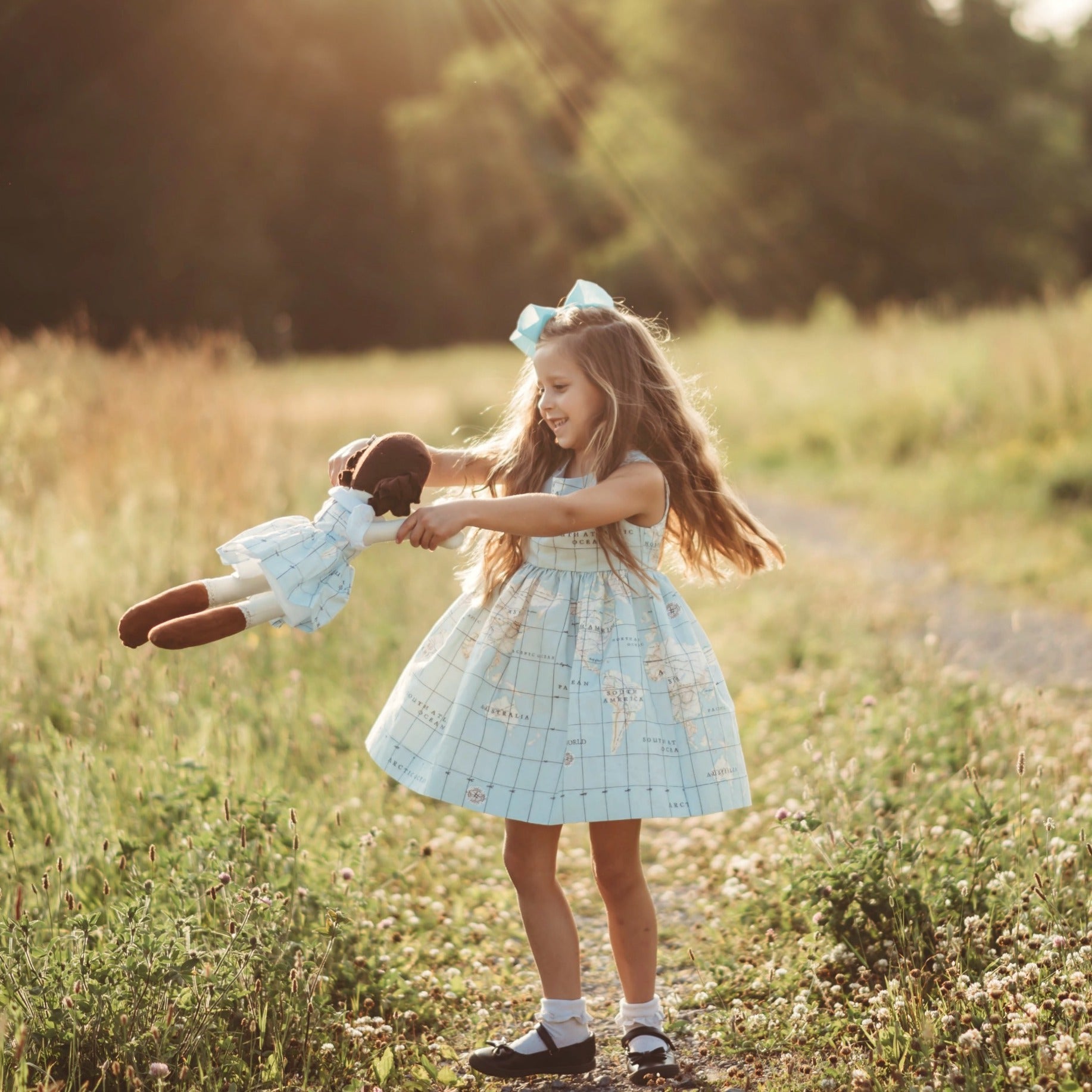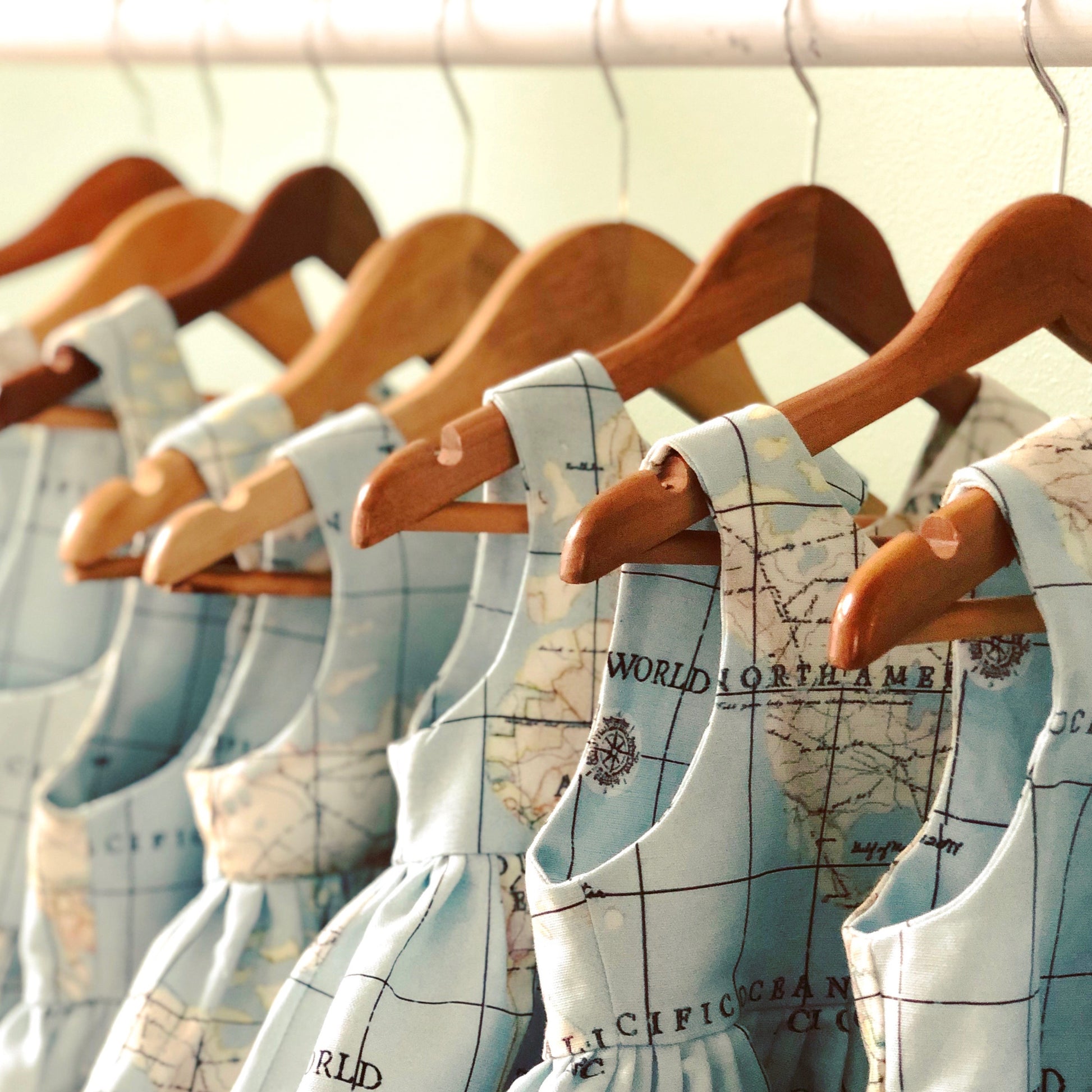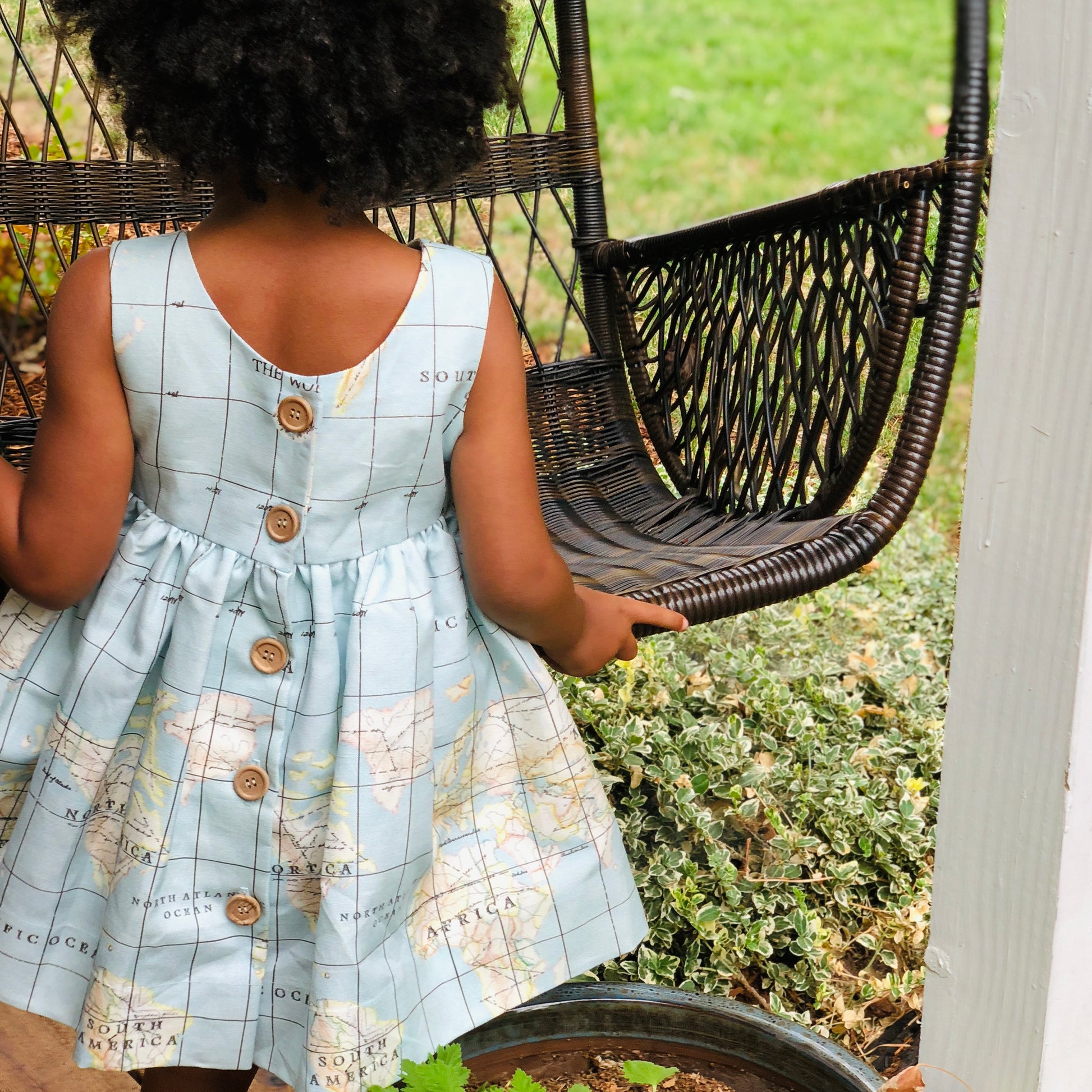 Violett Valentine's signature map dress is a one of a kind piece made for any occasion. This little number is available year round and is oh so cute when paired with our Peter Pan collared shirt. Find Violett's next destination on the custom designed map fabric!
